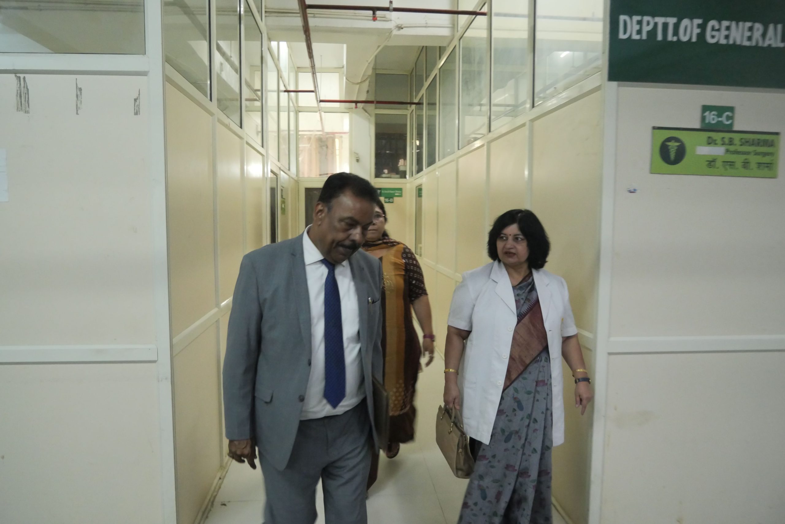 With their accreditation form and documents deemed satisfactory, the visit was scheduled, graced by our esteemed peer evaluation member, Dr. J. C. Passey, a distinguished Commission Member and Director & Dean at World College Of Medical Sciences And Hospital, Haryana. The visit took place on 29th July 2023 at 11:00 am, Saturday, during which Dr. J. C. Passey met with C.E.O. Dr. (Brigadier) Vats, Director Dr. Alka Chhabra, and all department Incharges. Throughout the inspection, the institute’s unwavering commitment to excellence in medical education was evident.